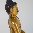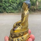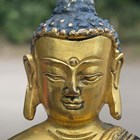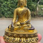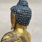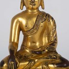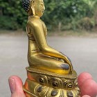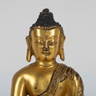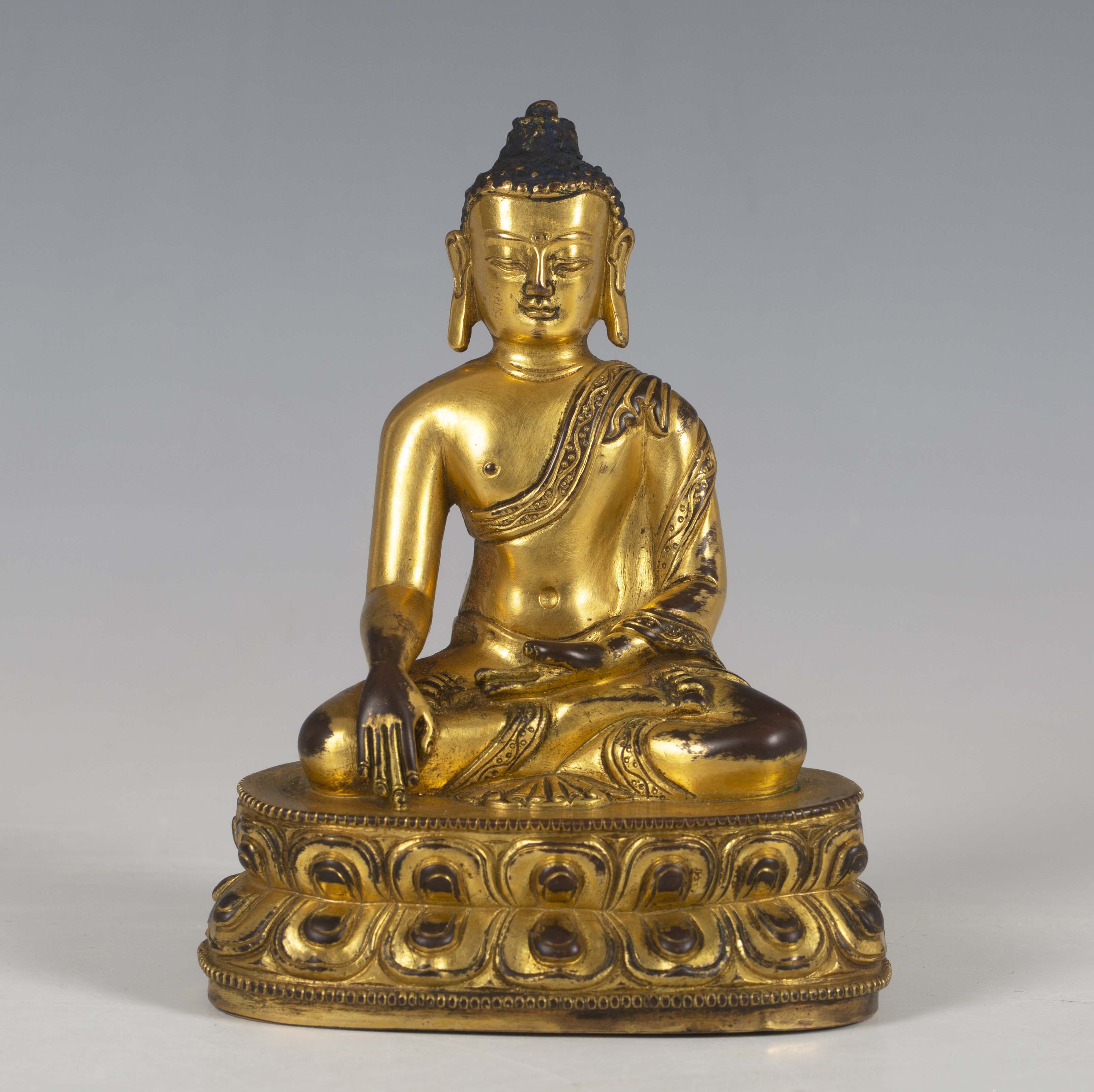 A Tibetan gilt bronze figure of Buddha, 16th century style but later, modelled seated in dhyanasana with hands held in bhumisparsa mudra, on a double lotus throne, height 11.9cm. Provenance: the Alain Presencer Collection.