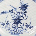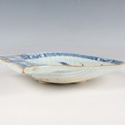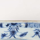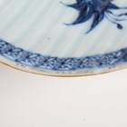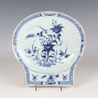 A Chinese blue and white export porcelain dish, Qianlong period, of scallop shell form, painted with flowers, length 19.5cm.