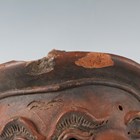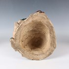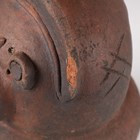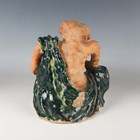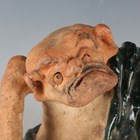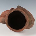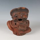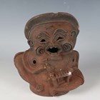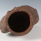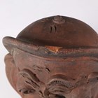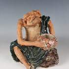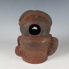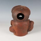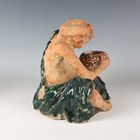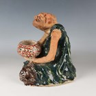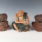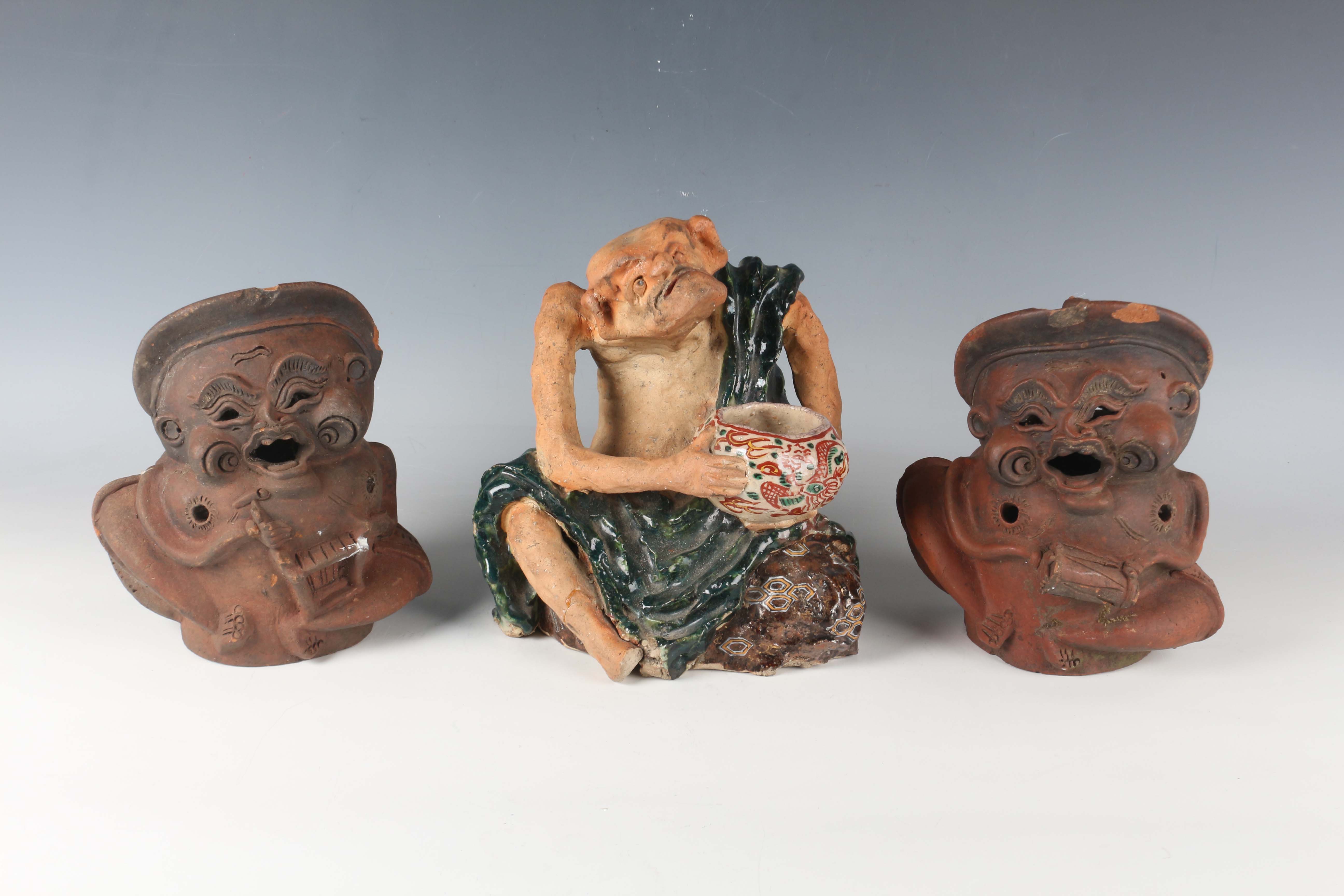 A Japanese earthenware figure of a seated beggar, Meiji/Taisho period, modelled holding a bowl, impressed mark to back, height 20.3cm, together with two Balinese terracotta figures, heights 18cm (some faults).