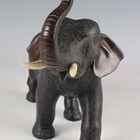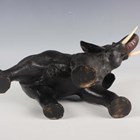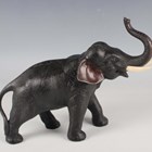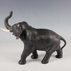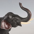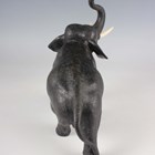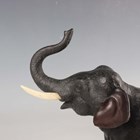 A Japanese brown patinated cast bronze figure of an elephant, Meiji/Taisho period, modelled standing with trunk raised, fitted with ivory tusks, unsigned, height 19.5cm, length 26.5cm. Note: a non-transferable ivory exemption certificate has been granted for the sale of this item.