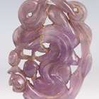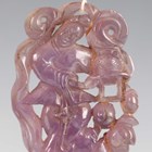 A Chinese amethyst quartz pendant, early 20th century, carved and pierced with a maiden and scrolls, length 4.9cm.