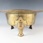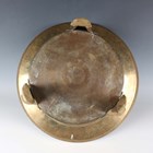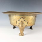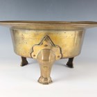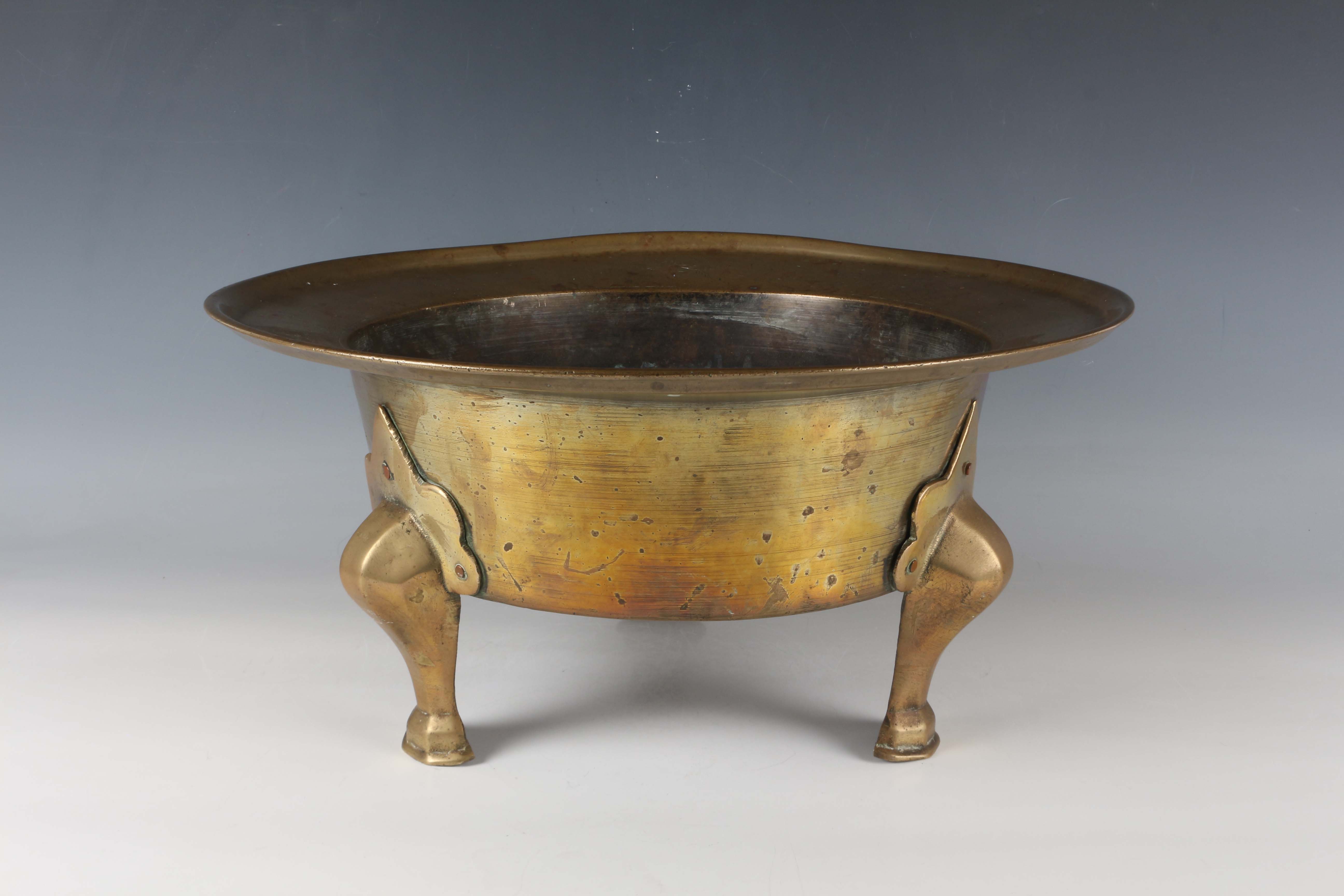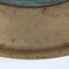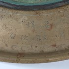 A Chinese bronze censer, 20th century, of circular form, the flat rim engraved with birds and inscriptions, on tripod feet, weight 4267g, height 19.5cm, diameter 40.5cm.