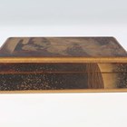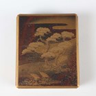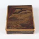 A Japanese gold lacquer kobako box and cover, by the Zohiko Company, 19th century, of rectangular form, finely decorated in gold hiramaki-e and kirigane with two cranes beneath pine trees and clouds, the interior with nashiji decoration, gilt seal mark of Zohiko to underside, length 9.3cm, width 7.8cm, depth 2.4cm. Provenance: ex collection of Claudio Perino, a keen collector of Japanese, Chinese and Far Eastern works of art. Note: the Zohiko Company is a famous Kyoto lacquer company, established in 1661 and still active today.