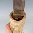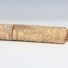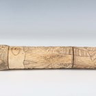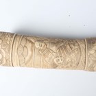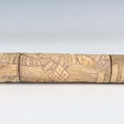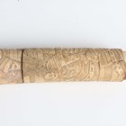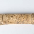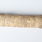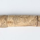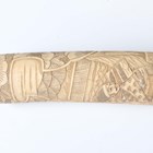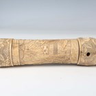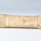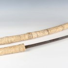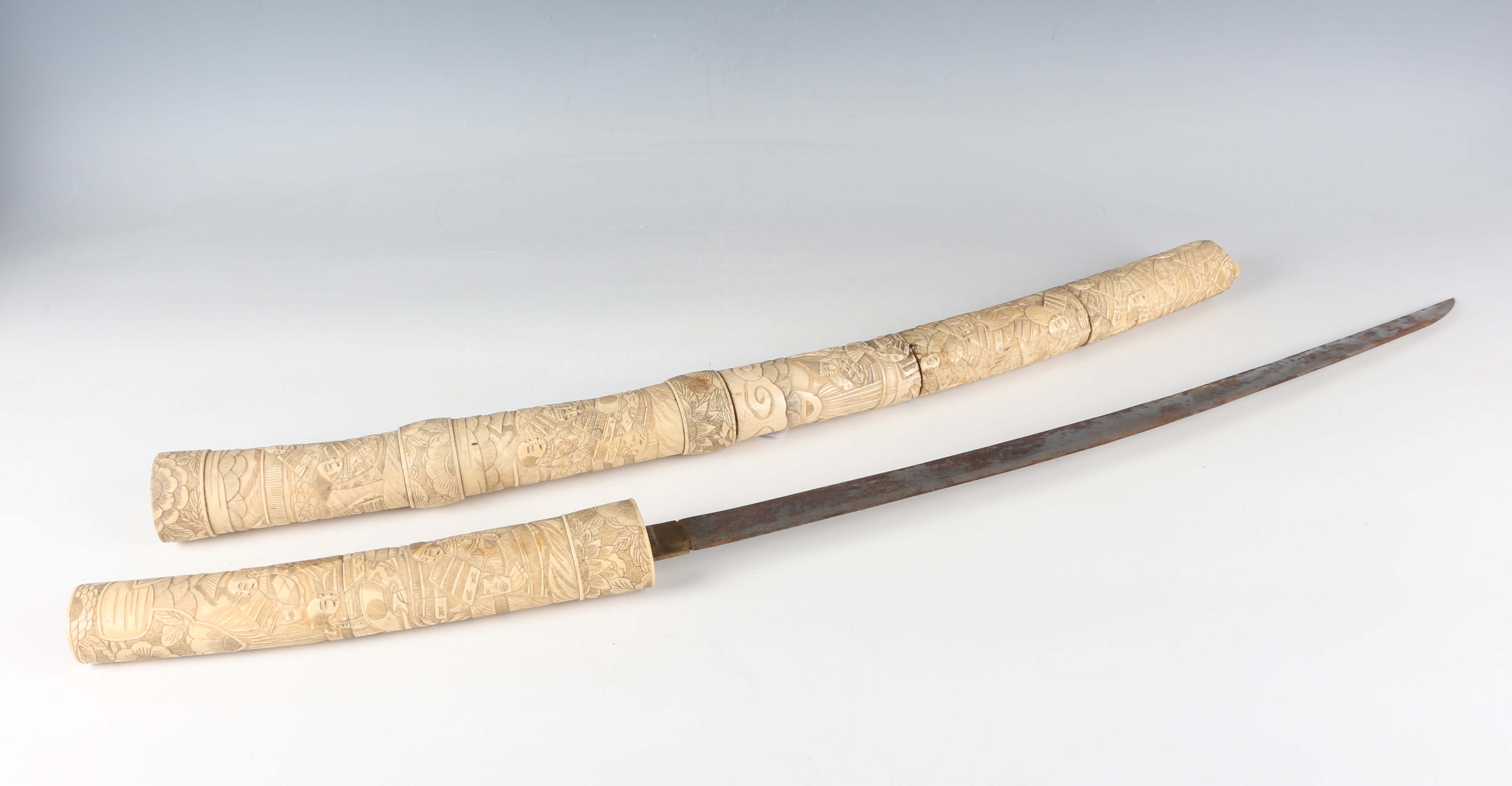 A Japanese sectional bone mounted wakizashi (short sword), early 20th century, with slightly curved single-edged blade, the handle and scabbard carved in relief with figures, length 81.7cm (missing end and faults).