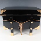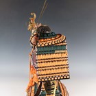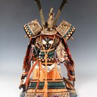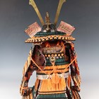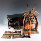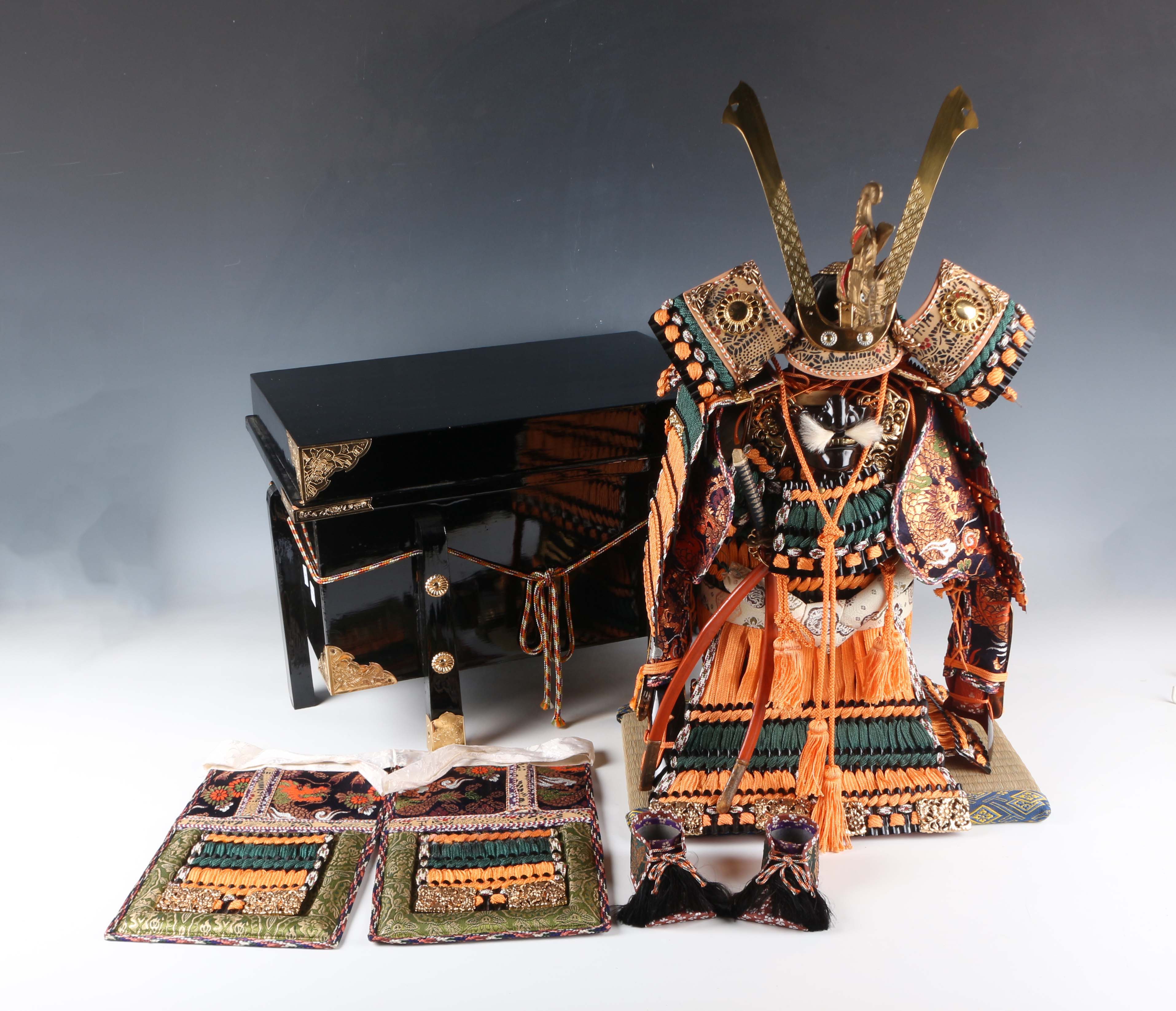 A Japanese silkwork and gilt metal samurai armour display model, late 20th century, height 51cm, together with a gilt metal mounted black lacquer box.