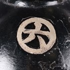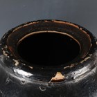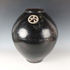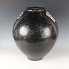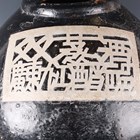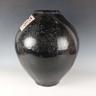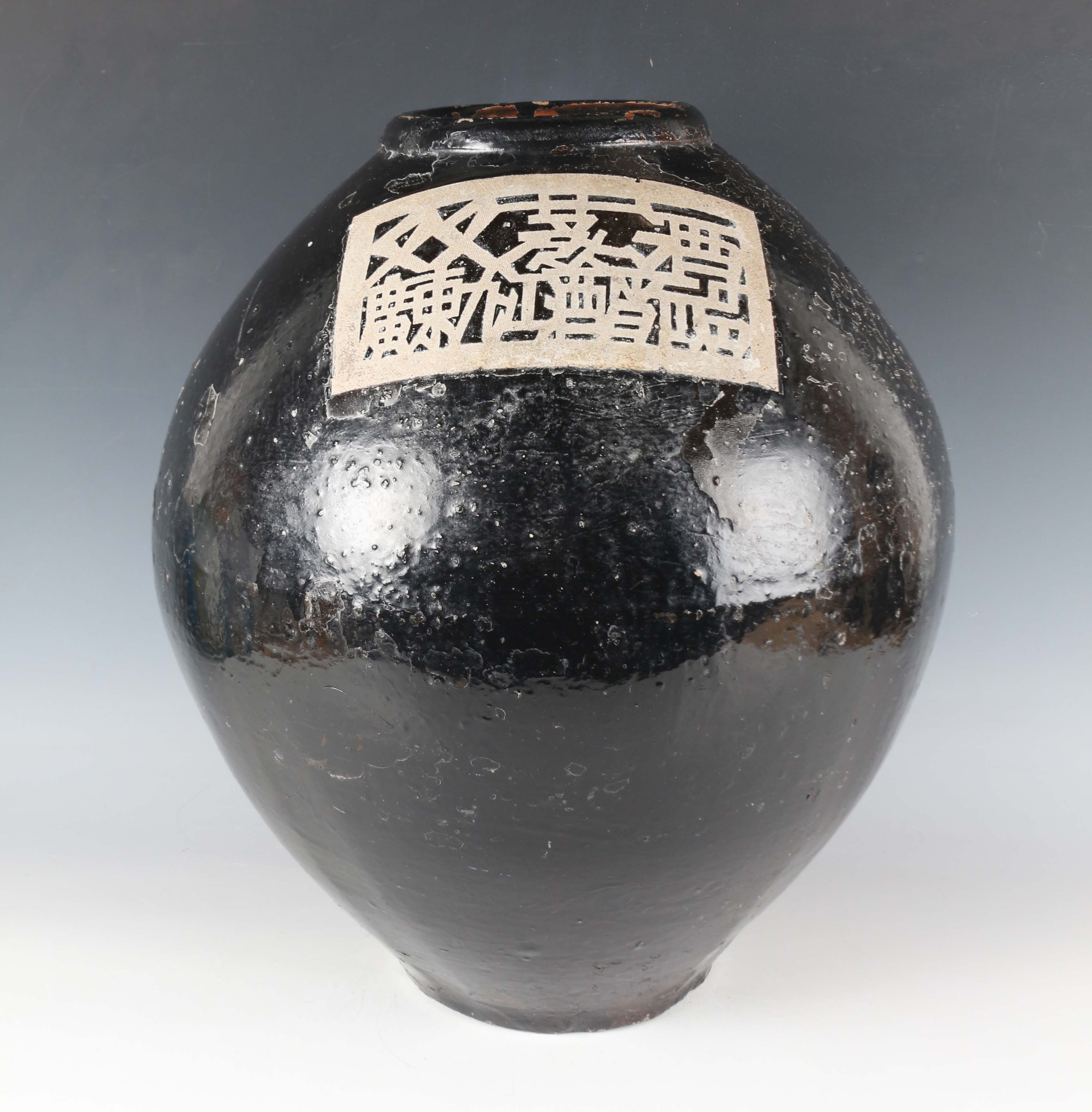 A Chinese Martaban dark brown/black glazed earthenware ovoid storage jar, early 20tn century, one side decorated with a rectangular panel of stylized script, opposing a single character to the reverse, height 43cm.