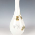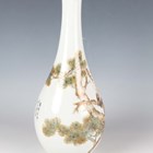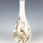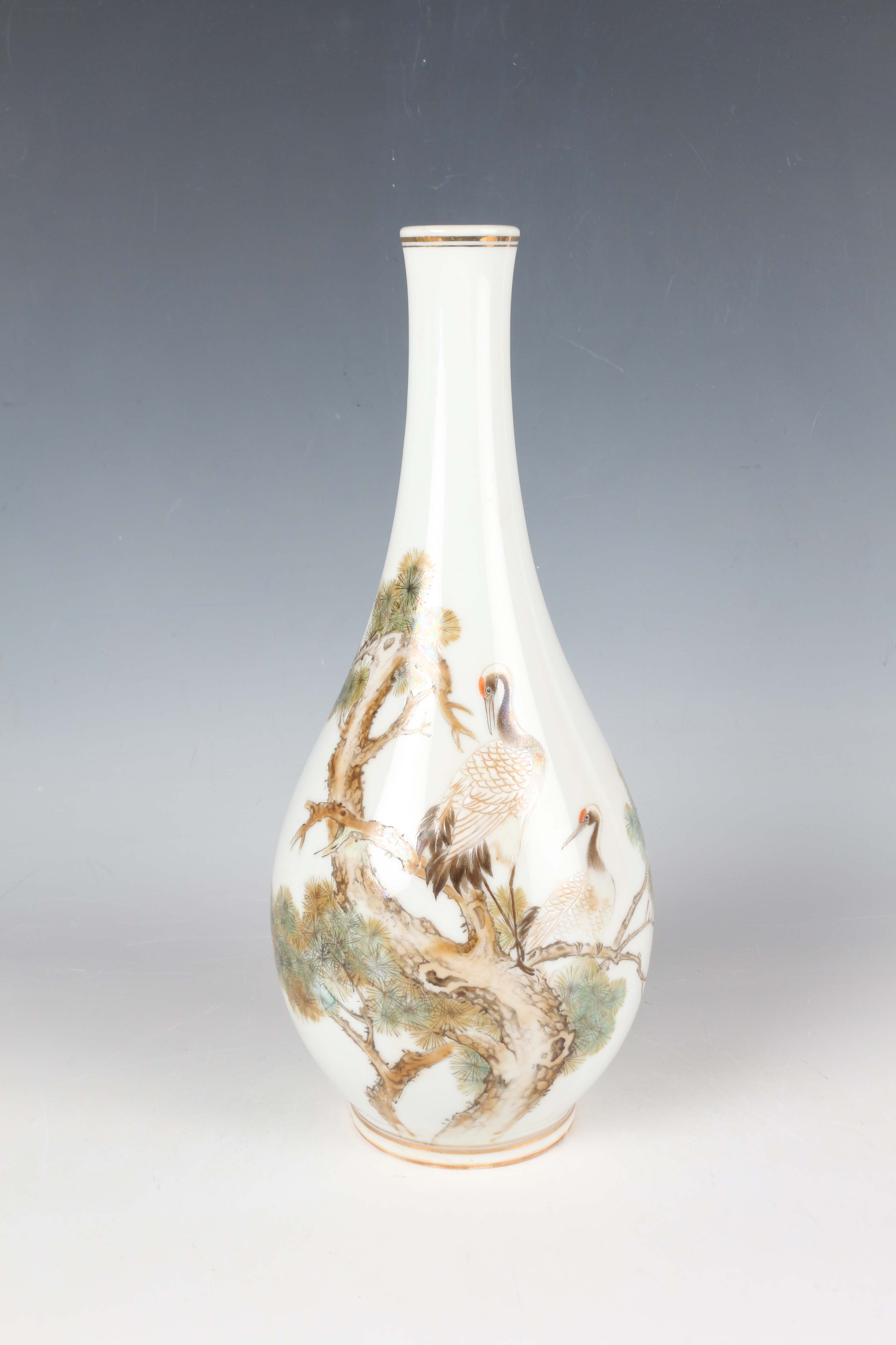A Chinese porcelain bottle vase, painted with two red-capped cranes perched on pine branches, opposing lines of black painted text and red printed seal, iron red Jingdezhen seal to base, height 28.3cm.