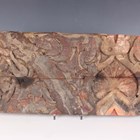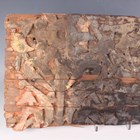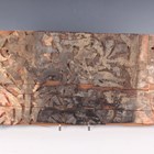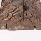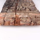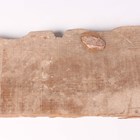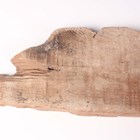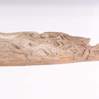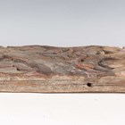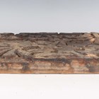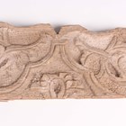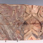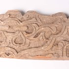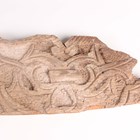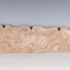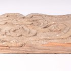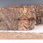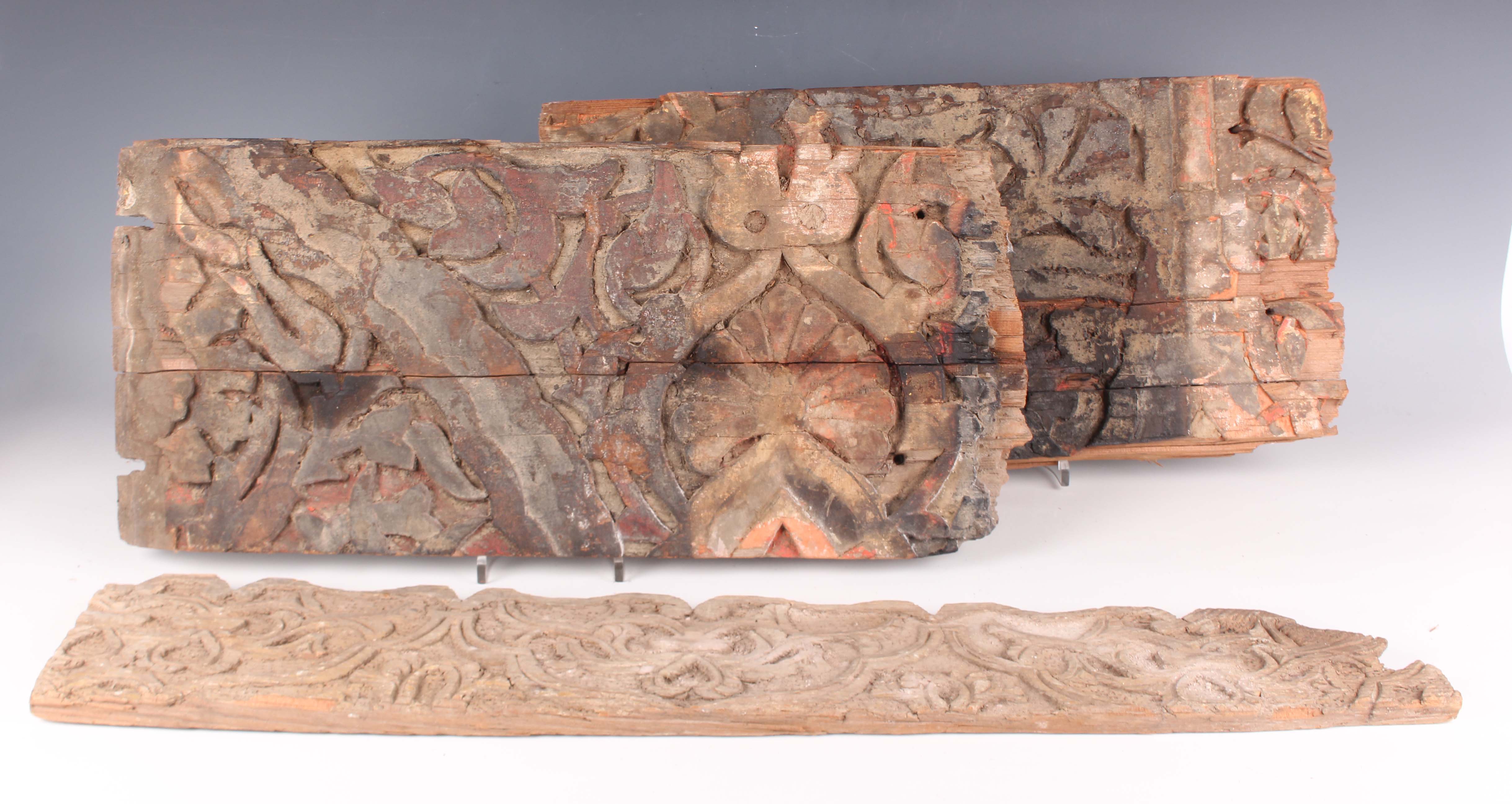 Two Islamic carved wood architectural panels, probably Granada, Andalusia, 10th-12th century, each of rectangular form, carved in relief with scrolling stems and foliage, traces of pigment, 49.5cm x 24cm and 52cm x 23cm, together with another similar panel, carved with arches and scrolls, length 69cm.