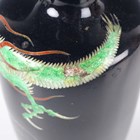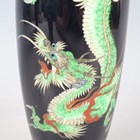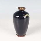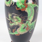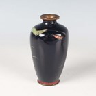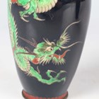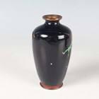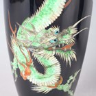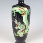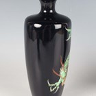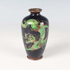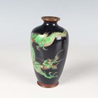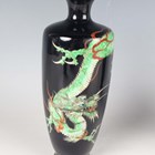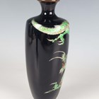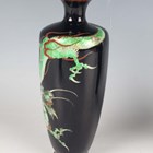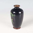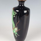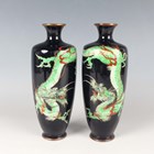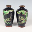 A pair of Japanese ginbari cloisonné vases, Meiji period, of shouldered tapering form with short flared necks, each decorated with a green, red and silver dragon on a black ground, unsigned, height 18.5cm, together with a pair of similarly decorated smaller vases, height 8.8cm (minor faults).