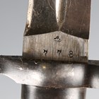 A Swedish M1896 Mauser bayonet with single-edged fullered blade, blade length 20.5cm, the ricasso stamped '778', steel crossguard and tubular cross-hatched grip, with steel scabbard with leather suspension frog.