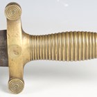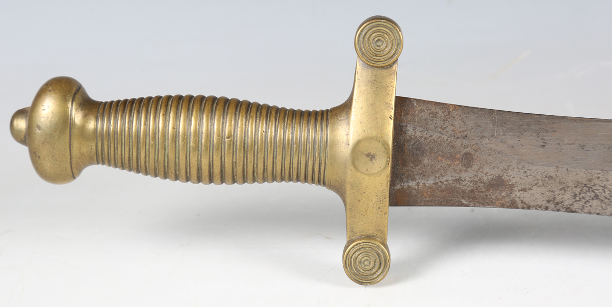 A French model 1831 artillery gladius shortsword or sidearm by Talabot, Paris, with typical straight leaf-shaped blade, blade length 48.5cm, and cast brass hilt.