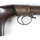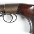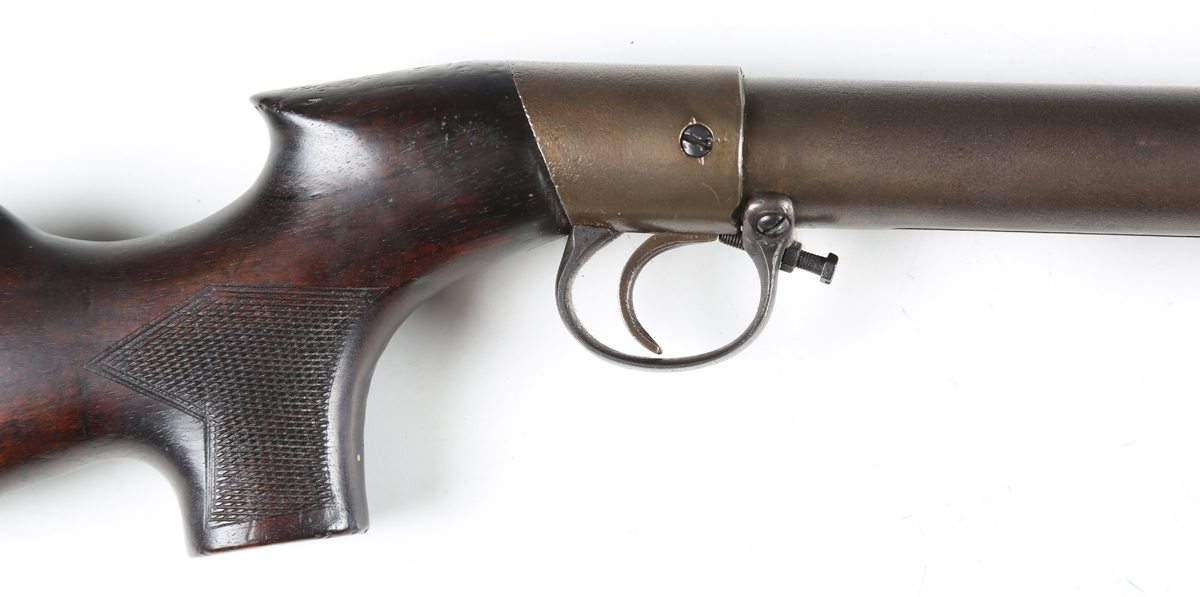 An early 20th century BSA .177 Improved Model D air rifle with front and rear sighted barrel, underlever action and wood stock with chequered grip, embossed BSA trademark of three crossed rifles and steel butt plate.