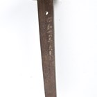 A fine Second World War period Japanese officer's katana with curved single-edged blade, blade length 68cm, the tang finely signed to both sides and with single peg hole piercing, cast bronze tsuba, fabric tape bound fishskin grip with partially hidden flowerhead menuki fitting, fuchi and kabuto-gane pommel, the fuchi with spring loaded scabbard release, with green/brown painted scabbard with single ring suspension.
