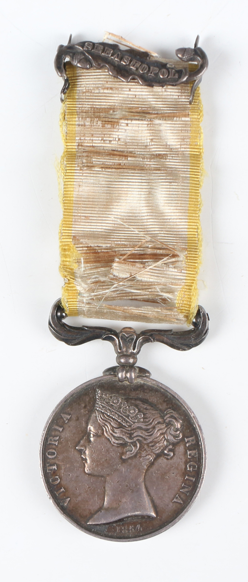 A Crimea Medal, unnamed, with loose bar 'Sebastopol' fitted to the original ribbon.
