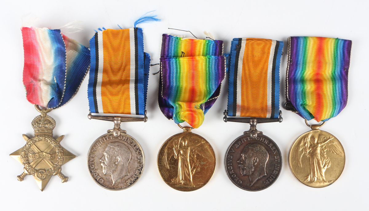 A group of First World War medals to the Addis family, comprising 1914-15 Star to ‘83325. Dvr.M.A.Addis. R.F.A.’ and 1914-18 British War Medal and 1914-19 Victory Medal to ‘83325 Dvr.M.A.Addis. R.A.’, together with another 1914-18 British War Medal and a 1914-19 Victory Medal to ‘1127 Cpl.A.J.Addis. R.Fus.’.