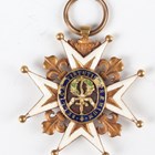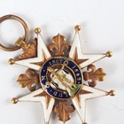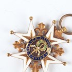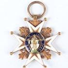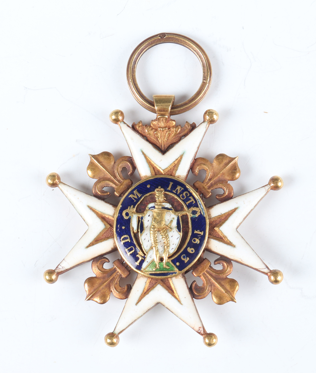 A French gold and enamel Royal and Military Order of St. Louis, Knight’s breast badge, marked to the suspension loop, width 3.5cm, with an associated case.