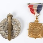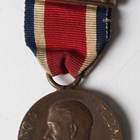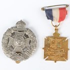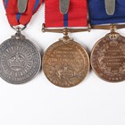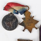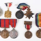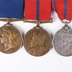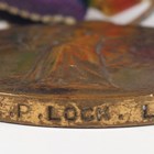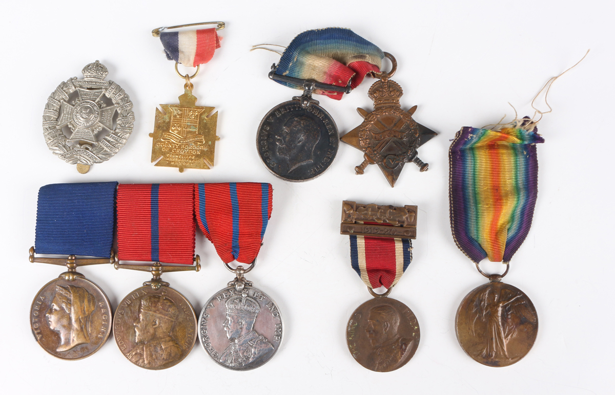 Three First World War medals, comprising 1914-15 Star to ‘8454 Pte P.Lock. Leic:R.’ and 1914-18 British War Medal and 1914-19 Victory Medal to ‘8454 Pte.P.Lock. Leic.R.’, three City of London Police medals, comprising 1897 Diamond Jubilee Medal to ‘PC.176. E.Morse’, 1902 Coronation Medal to ‘P.C. E.Morse’ and 1911 Coronation Medal to ‘P.C E.Morse’, a London County Council good conduct medal to ‘G.W.Buckingham’, a County Borough of Croydon Victory Celebrations Medal 8th June 1946 and a Tower Hamlets Rifles, The Rifle Brigade cap badge.
