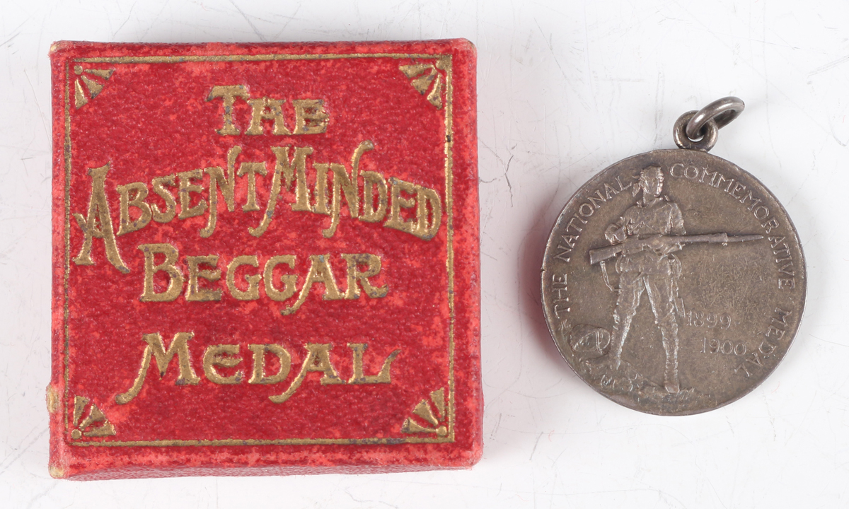 A Spink & Son silver 'Absent Minded Beggar Medal', commemorating the ‘Magnificent Response of Britain’s Sons to the Empire’s Call to Arms Transvaal War 1899-1900’, with the original case.