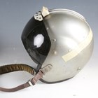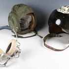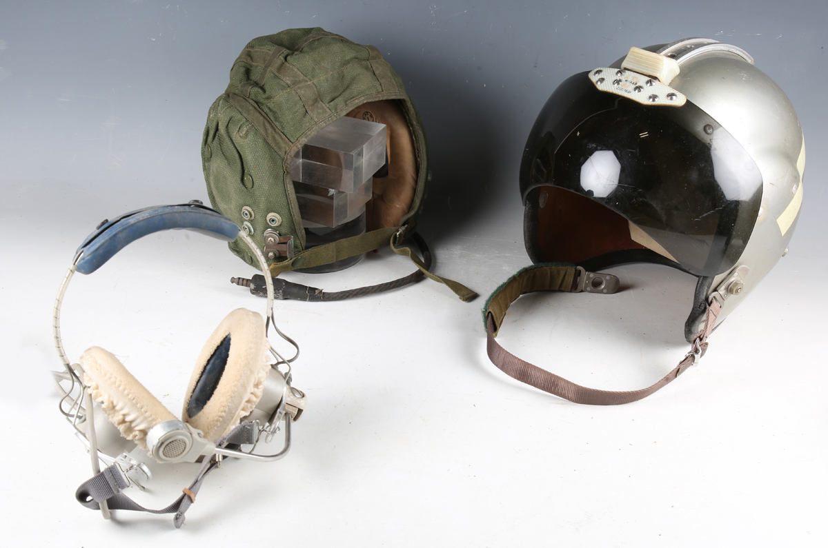A scarce RAF Mk 1A (M) flying helmet/bone dome, circa 1970, with leather lined fibreglass body, anti-glare visor and canvas chin strap, marked to leather lining 'Size 3 Narrow, Serial Number 84401, Stores Reference No 22C/2119, Con Number 351/66', together with a group of other flying equipment, including an RAF green Type G flying helmet, size three, a pair of flight trousers and an Airmed Airlite headset.