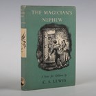 LEWIS, C.S. The Magician’s Nephew. London: Bodley Head, 1958. First edition, second impression, 8vo (196 x 132mm.) Illustrations by Pauline Baynes. Original green cloth (lightly bumped spine ends), dust-jacket (lightly price-clipped, slight crease to spine panel, toning to lower panel). Note: the sixth novel in the ‘The Chronicles of Narnia’ series.
