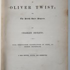DICKENS, Charles. The Adventures of Oliver Twist; or, The Parish Boy’s Progress. London: for the Author by Bradbury and Evans, 1846. New Edition, Revised and Corrected, 8vo (209 x 132mm.) Half-title, 24 etched plates by George Cruikshank. (Spotting to plates and verso, occasionally to text). Contemporary green half morocco over marbled paper-covered boards, red morocco lettering piece to the spine (some loss to spine label, extremities all rubbed, some loss to lower joint). Note: the first single-volume edition.