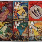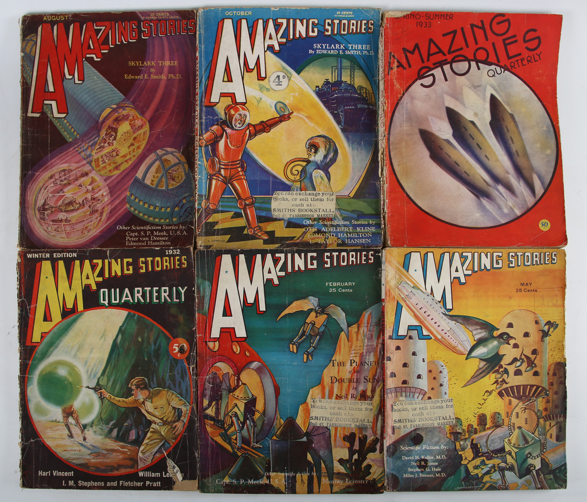 PULP SCIENCE FICTION. Amazing Stories. New York: The Experimenter Publications Inc., August 1930-October 1951. 51 issues, 4to (292 x 216mm.) Colour illustrations. (Browning, some corner creases.) Original wrappers (rubbing, some loss to spines, upper wrapper lacking for ‘June 1935’). Note: an incomplete run, mostly 1930’s. Amazing Stories began in April 1926 and was the first magazine devoted solely to science fiction (51).