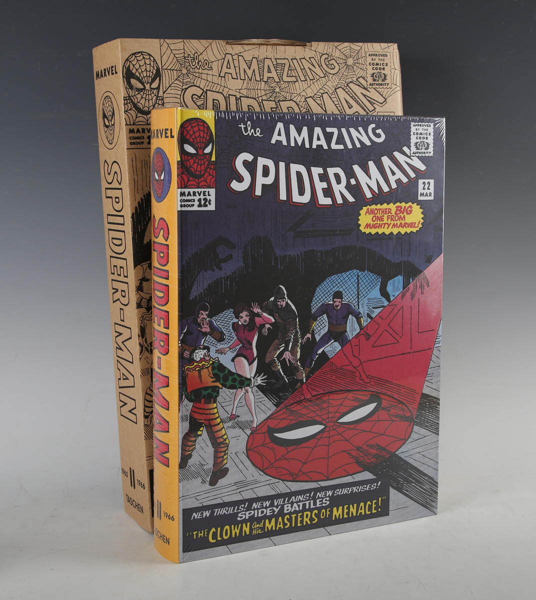 LEE, Stan. The Amazing Spider-Man. Los Angeles: Taschen, 2023. Vol. 2., Collector’s Edition, folio (402 x 274mm.) Numerous colour illustrations. Original pictorial boards, publisher’s shrink-wrap, original box. Note: covers the years 1965-66.