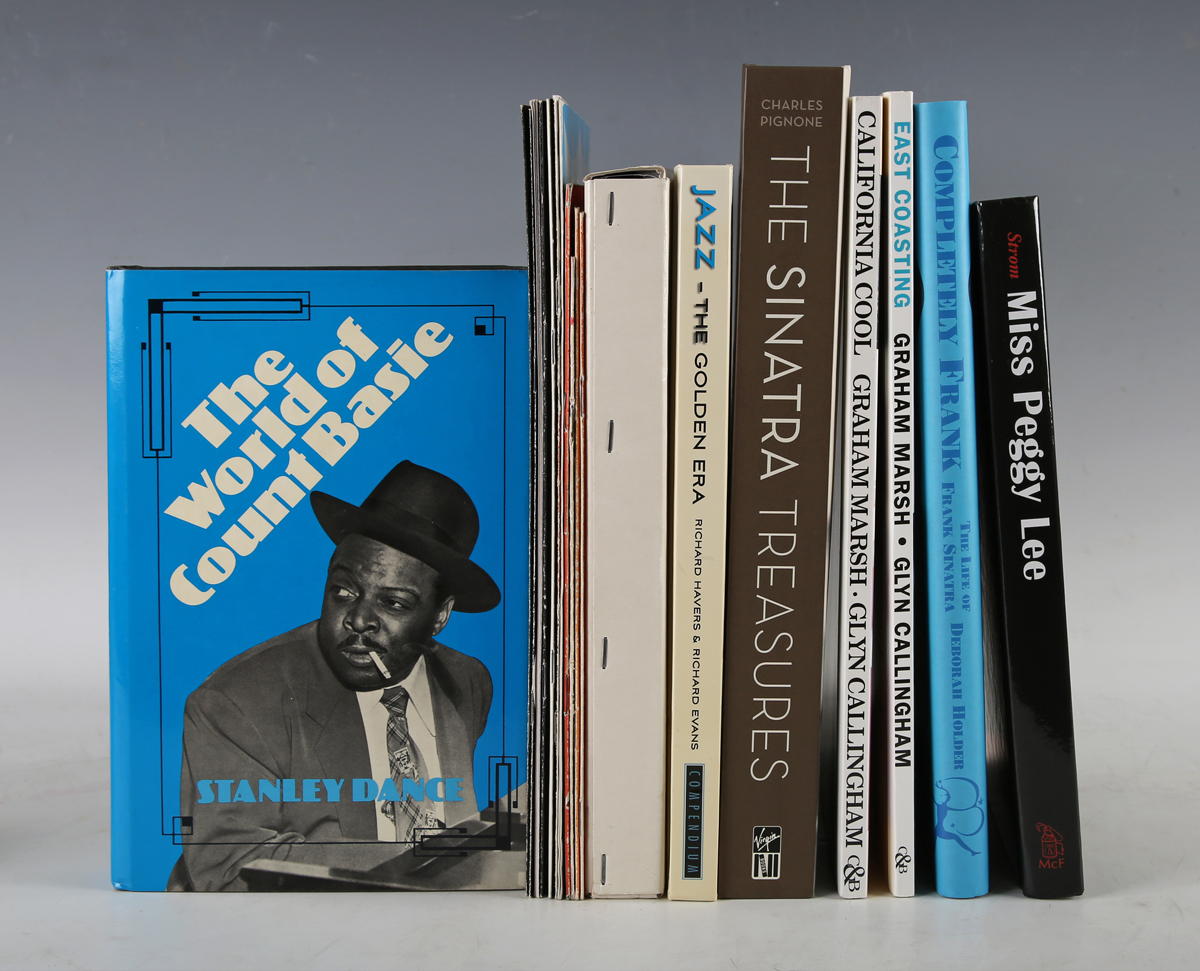 JAZZ. – Stanley DANCE. The World of Count Basie. London: Sidgwick & Jackson, 1980. 8vo (228 x 147mm.) Photographic illustrations. (Toning.) Original black cloth, dust-jacket. – And a quantity of approximately eighty-five volumes related to jazz (including fifteen souvenir brochures, circa 1960’s-1980’s) (a quantity).