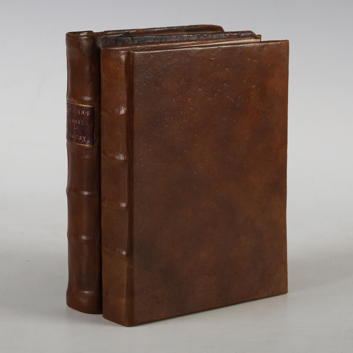 ARCHITECTURE. – Batty and Thomas LANGLEY. The Builder’s Jewel: or, the Youth’s Instructor, and Workman’s Remembrancer. London: C. and R. Ware, 1763. 16mo (145 x 111mm.) Engraved frontispiece, 99 engraved plates. (Browning, some marginal loss to title and A1 with paper repairs, slight chipping to blanks.) Near contemporary calf (rebacked with original morocco lettering piece, endpapers replaced, extremities rubbed). Provenance: A. Dunbar-Smith (ink inscribed verso frontispiece). – And a further edition (Batty and Thomas Langley’s ‘The Builder’s Jewel’, [lacking 2 plates], 1760, 16mo) (2).