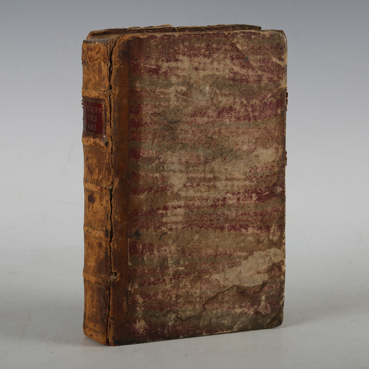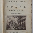 WILKES, David. A General View of the Stage. London: for J. Coote and W. Whetstone, 1759. First edition, 8vo (199 x 128mm.) Title with engraved sepia vignette. (Spotting to title and scattered thereafter, last five leaves with marginal insect-damage.) Contemporary calf-backed boards, red morocco lettering piece to the spine (hinges weakened, extremities rubbed). Note: scarce. With chapters on ‘how an actor ought to form himself’, farce, opera, Irish theatre, modern theatre, and ‘Garrick’s different excellencies’.