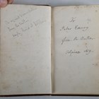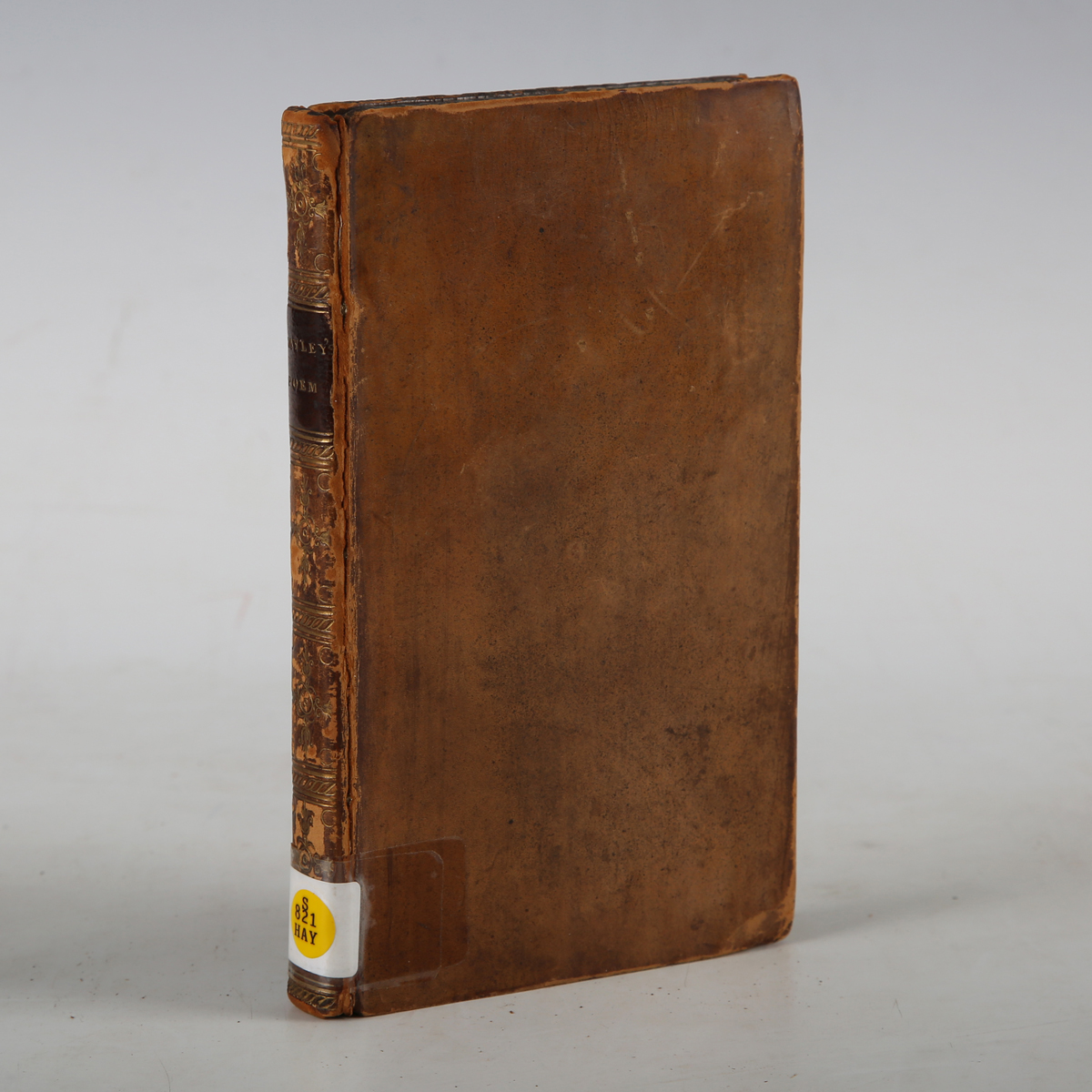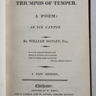 HAYLEY, William. The Triumphs of Temper. A Poem: In Six Cantos. Chichester: by W. Mason, 1809. New edition, inscribed by William Hayley, 8vo (164 x 94mm.) Half-title. (Marginal offsetting and spotting to rear leaves.) Contemporary full calf, morocco lettering piece to the spine (spine rubbed). Note: the inscription reads: ‘To Peter Emery from the author, Felpham 1819’. Hayley wrote the first biography of his friend George Romney and was a great patron of an artistic circle that included William Blake and Charlotte Smith. Provenance: Peter Emery (inscribed to from the author in ink on the first blank); Eliza Cave (gift inscribed to from Peter Emery in ink on the second blank); West Sussex County Library (labels to pastedowns, stamps verso title).