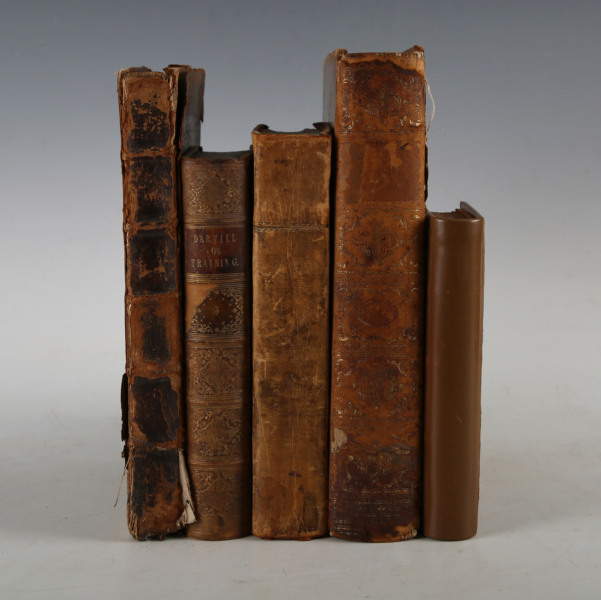 FULLER, Thomas. [The History of the Holy Warre]. Cambridge: Thomas Buck, 1639. First edition, folio (265 x 174mm.) 28pp. ‘Table’ to rear. (Lacking title and all before A1, lacking half the map, damp-staining to first leaves, lacking rear blank.) Contemporary calf (worn). Note: 2N6 a blank leaf. – And a further four volumes (including R. Darvill’s ‘A Treatise on the Care, Treatment, and Training of the English Race Horse’, 1828, 8vo, and Charles Hutton’s ‘Mathematical Tables’, 1804, 8vo, and John Abercrombie’s ‘The Gardener’s Pocket Journal and Daily Assistant’, 1804, 12mo) (5).