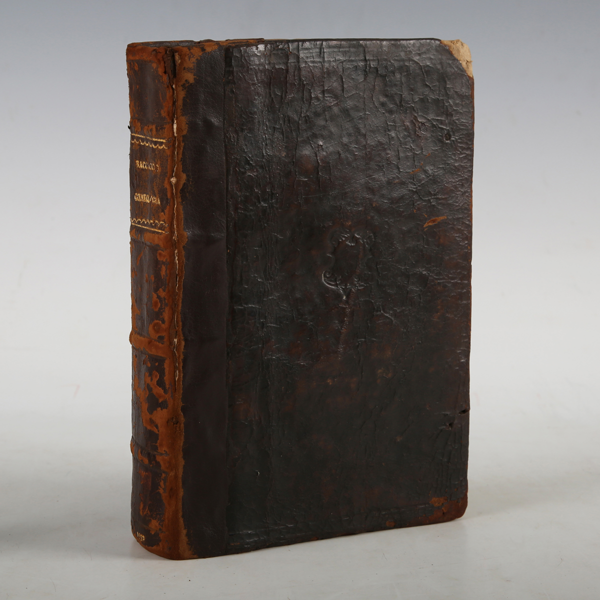 BOCCACCIO, Giovanni. Geneologia de gli dei… Tradotti e adornati per M. Giuseppe Betussi da Bassano. Venice: Comin da Trino, 1553. 4to (211 x 144mm.) Title within woodcut border, woodcut initials, 1 full-page woodcut, woodcut bust verso last leaf. (Light damp-staining to first leaves, leaf *viii loosening, marginal staining M8-O2 and also from HH to last leaf.) Near contemporary calf (rebacked, extremities rubbed with minor loss, slight insect damage). Note: Boccaccio’s book on the lineage of the classical gods was considered, during his lifetime and for two hundred years afterwards, his most important work. Provenance: Peter and Linda Murray, art historians (bookplate to front pastedown).