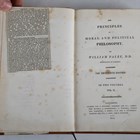 CRIMEAN WAR. – William PALEY. The Principles of Moral and Political Philosophy. London: J. Faulder et al., 1814. 2 vols., 8vo (208 x 125mm.) Numerous pencil and ink annotations and mounted newspaper clippings related to philosophical questions, loosely inserted contemporary notes and a letter addressed to Captain Henry Duberly. (Browning and scattered spotting throughout.) Contemporary calf (lacking spine to vol. 1, extremities rubbed). Note: Captain Henry Duberly was part of the British Light Cavalry that took part in the Charge of the Light Brigade. His wife, Fanny Duberly, travelled with him to the Crimea and published her experiences in 1856 in ‘Journal Kept During the Russian War’. In the pencil and ink annotations that Henry has made he weighs up the existence of God based on the beliefs of the great minds in history. He lists those that believe (Grotius, Locke, Watson, Addison, Paley, Newton and Bacon’ against those that didn’t believe (Hobbes, Hume, Robertson, Gibbon, Bolingbroke, Parson, Drummond, Chatham, Voltaire and Volney’. Isaac Newton baffles him. Having ‘set out as an infidel he became the firmest of believers’. Provenance: Captain Henry Duberly, Paymaster of the 8th Royal Irish Hussars (name-plate to front pastedown and ink inscribed to initial blank of vol. 2) (2).
