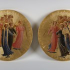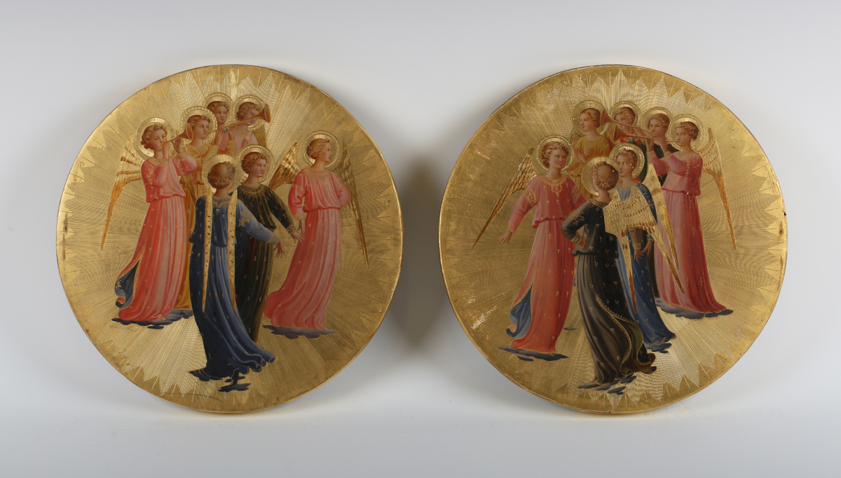 Manner of Fra Angelico (Italian c.1395-1455) - Choirs of angels, a pair, oil on a gold ground on 19th century panels, tondo, each diameter 29cm, unframed (2).