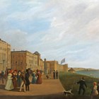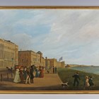 British School (19th century) - Distant view of the Chain Pier, Brighton, from Brunswick Terrace, oil on canvas, 44cm x 60.5cm, within a plain gilt frame.