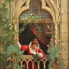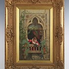 Hermann David Corrodi (Italian 1844-1905) - ‘At the window’, oil on panel, signed and inscribed 'Roma' lower left, 48cm x 29cm, within a swept gilt composition frame.