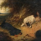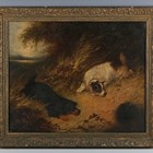 Edward Armfield (British 1817-1896) - Terriers rabbiting, oil on canvas, signed lower right, 44cm x 53cm, within a gilt composition frame.