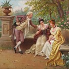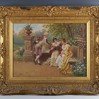 Carlo Ferranti (Italian 1840-1908) - ‘Happy Days’, oil on canvas, signed lower right, 41cm x 56cm, within a swept gilt composition frame.