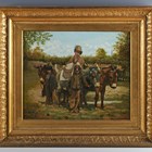 J. Bowman? (19th century) - Children and donkeys, oil on canvas, indistinctly signed lower right, 39cm x 47cm, within a gilt composition frame of deep section.