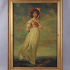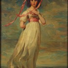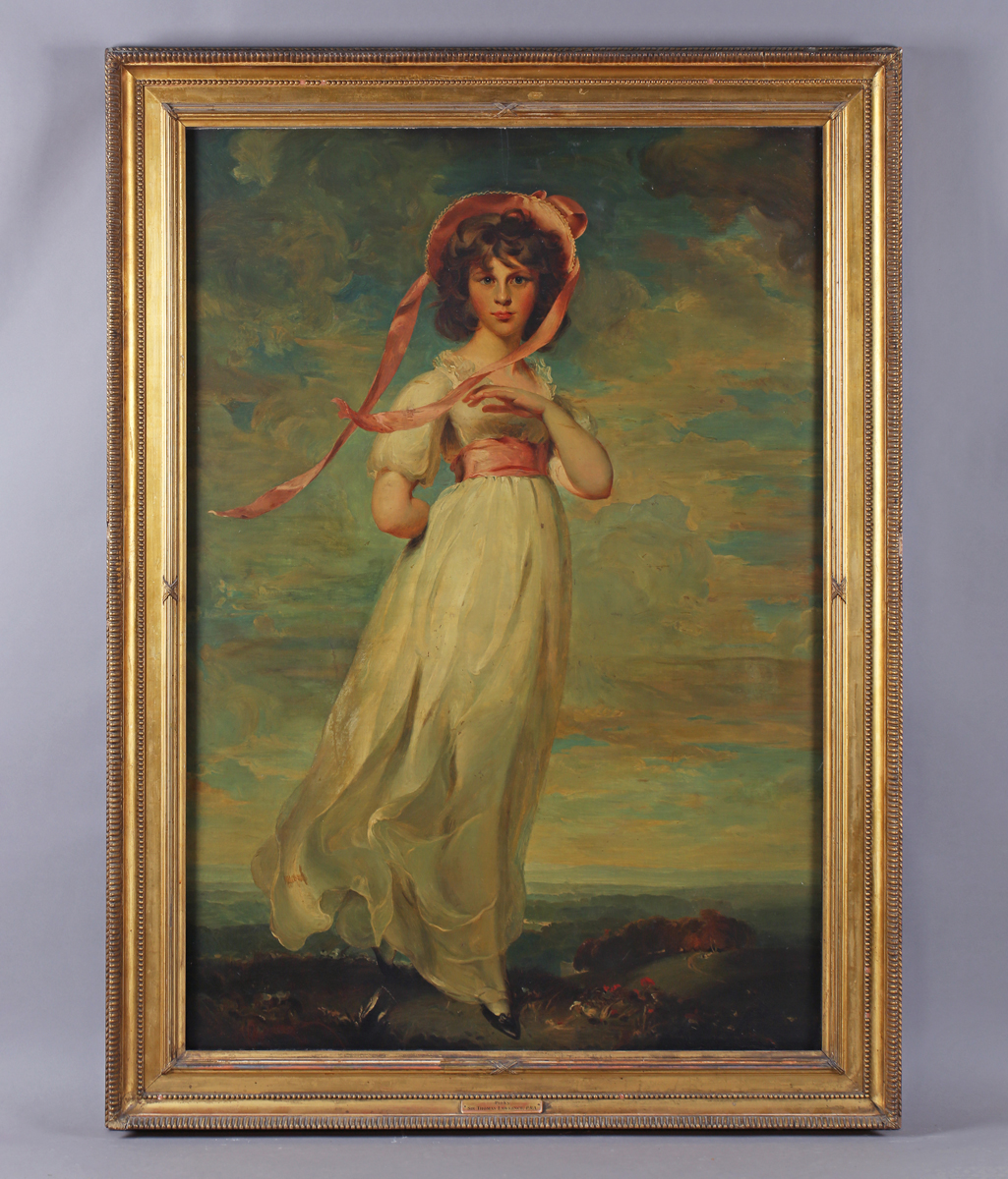 After Sir Thomas Lawrence (British 1769-1830) - ‘Pinky’: portrait of Sarah Moulton (1783-1795), oil on canvas, 147cm x 100.5cm, within a gilt composition frame of deep section with beaded decoration.