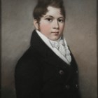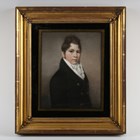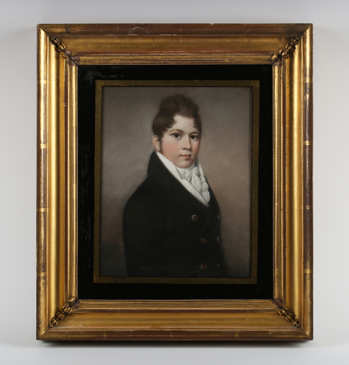 Attributed to John Raphael Smith (1752-1812) - Half-length portrait of ‘Peter Marron, aged 21, Born 1786’, pastel, circa 1807, inscribed verso, 23.5cm x 18.5cm, within a verre églomisé mount and gilt composition frame.