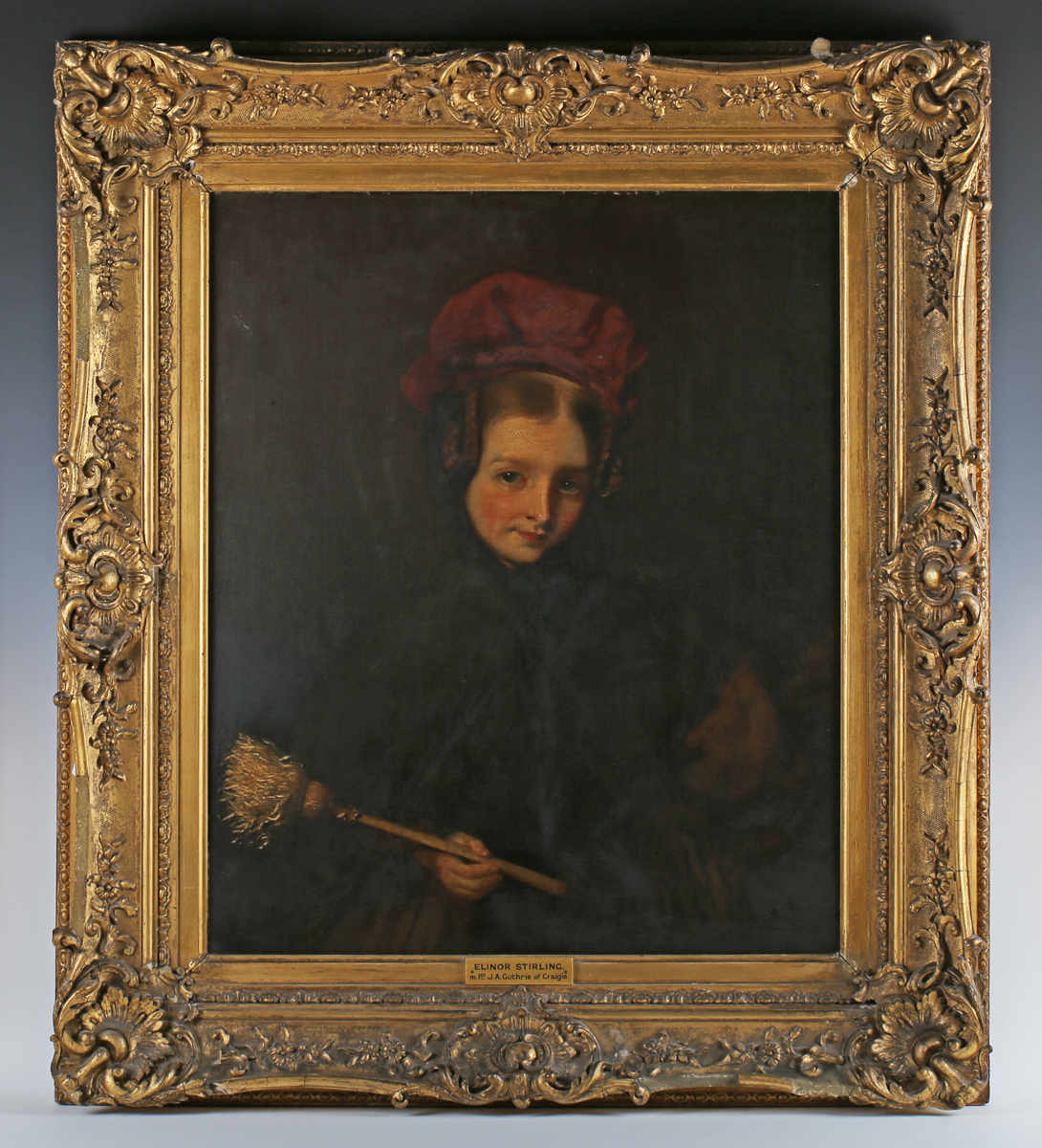 British School (19th century) - Half-length portrait of 'Elinor Stirling (1848-1911), m. 1st J.A. Guthrie of Craigie' (Admiral and Founder Governor of Western Australia), oil on canvas, 77cm x 63.5cm, within a swept gilt composition frame. Note: the daughter of the sitter married James Rennell.