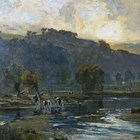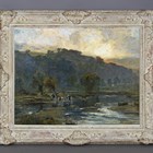 Bertram Priestman (British 1868-1951) - ‘Evening in Wharfedale, 1917’, oil on canvas, signed lower right, 71.5cm x 91.5cm, within a swept painted composition frame.
