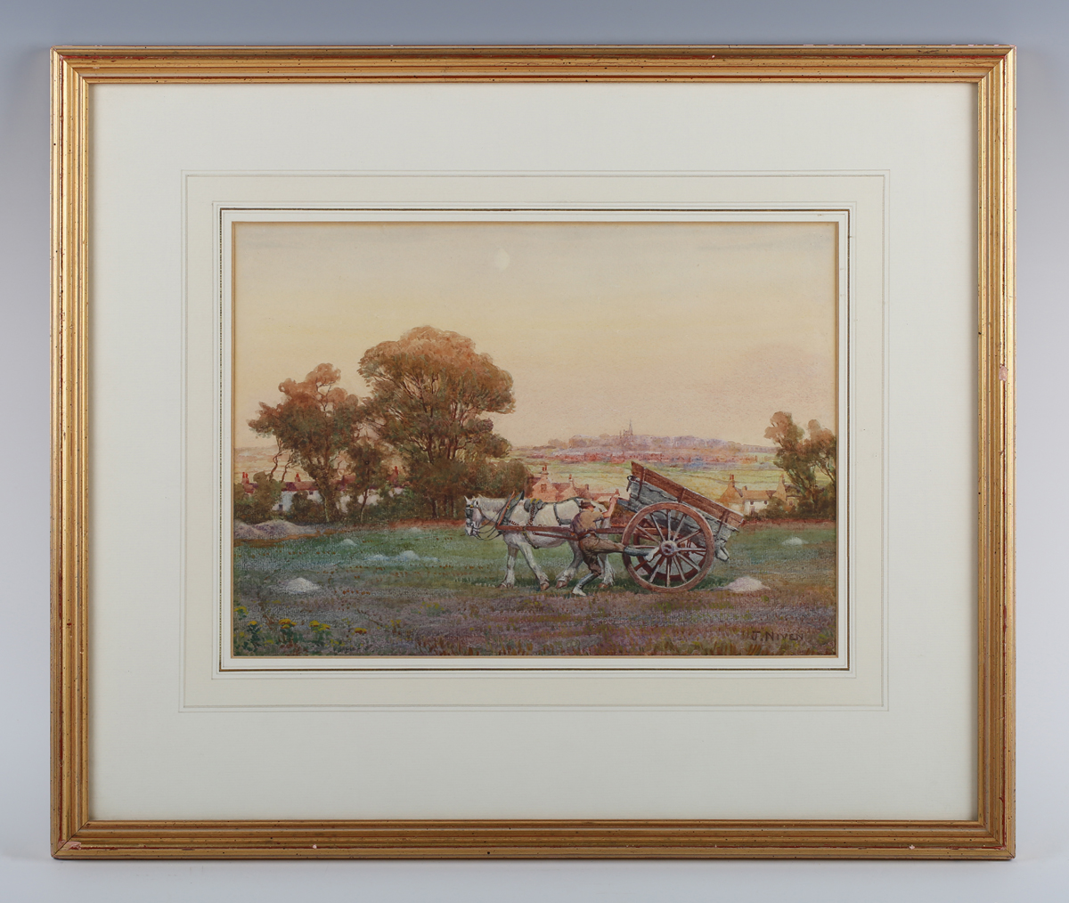 Jean Niven (British exh.1933-1936) - The End of the Day: horse and cart in a landscape, watercolour, signed lower right, 25cm x 35cm, within a gilt frame.