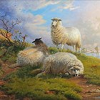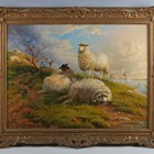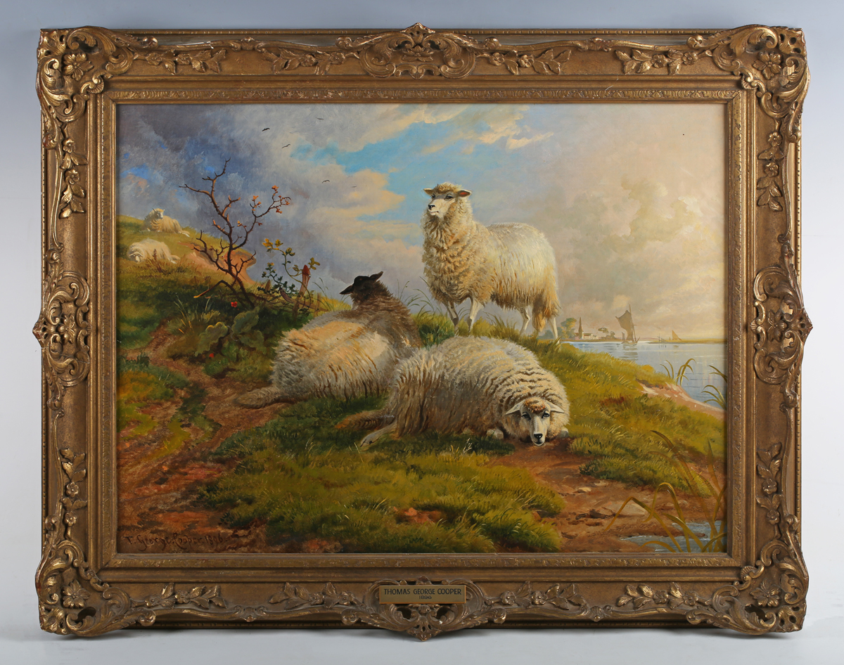 Thomas George Cooper (1836-1901) - Sheep resting in a landscape, an estuary beyond, oil on canvas, signed and dated 1896 lower left, 45cm x 62cm, within a swept gilt composition frame.