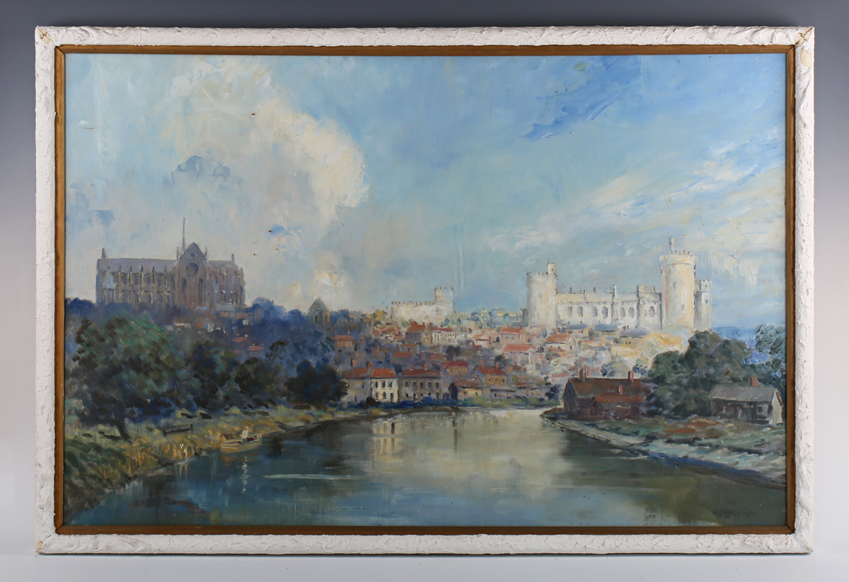 William ‘Will’ Frederick Longstaff (Australian 1879-1953) - Arundel from the river, oil on canvas, signed lower right, 62cm x 92cm, within a white painted frame.