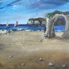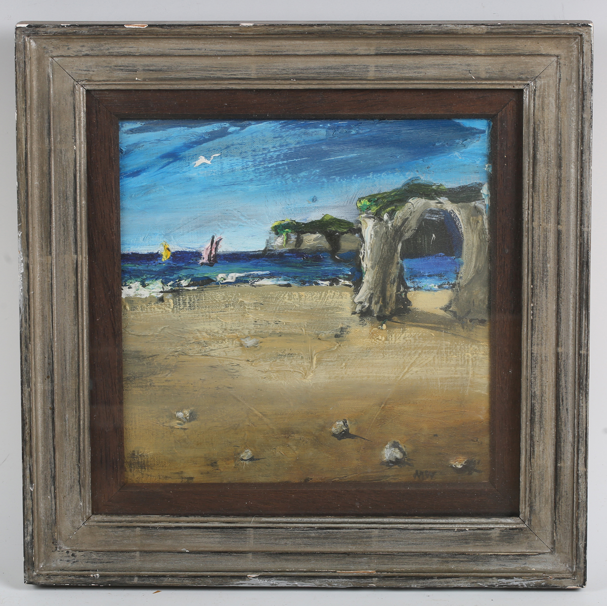 Michael Wishart (British 1928-1996) - ‘Small Seascape’, oil on canvas, signed with initials lower right, titled Michael Parkin label verso, 19cm x 19cm, within a silvered frame.
