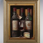 Raymond Campbell (British b.1958) - Still life of wine bottles and Stilton, oil on board, signed lower left, 40cm x 30cm, within a gilt composition frame.