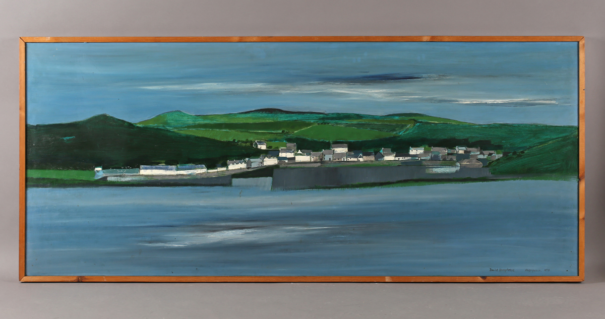 David Humphreys (British b.1937) - ‘Abergwaun’, oil on board, signed, titled and dated 1979 lower right, 84cm x 198cm, within a wood frame.